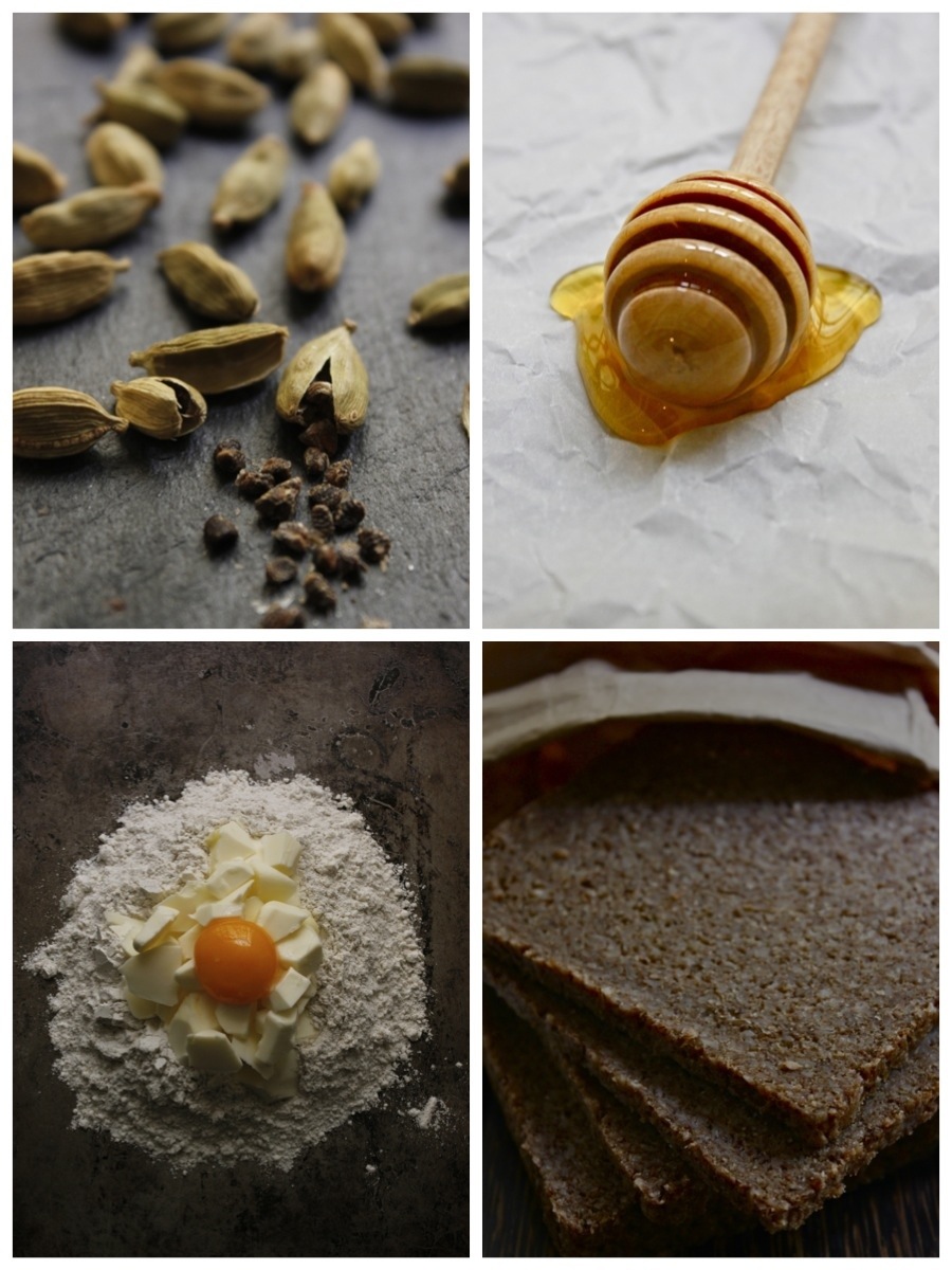 1. Start by making the pastry. In a bowl whisk together the all purpose flour, rye flour, salt and ground cardamom. Form a well in the middle and add the butter and egg yolk. Using a knife or a pastry cutter, cut the the butter into the flour until the mixture resembles sand. Using your hands quickly bring everything together – if the mixture appears very crumbly and dry, add 1-2 teaspoons of cold water. Shape into a ball, wrap in cling film and place in the fridge for 30 minutes.