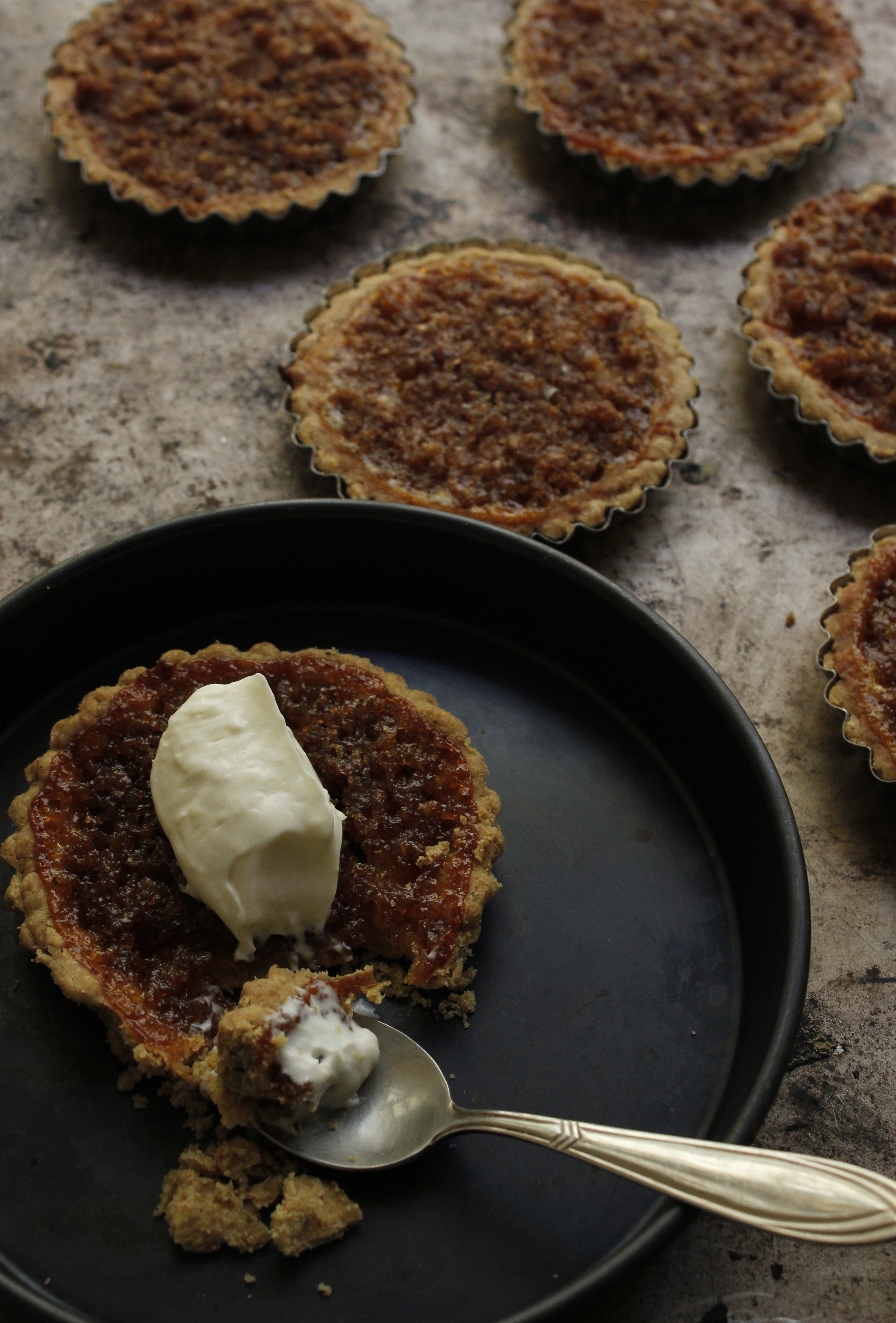 Double Rye Treacle Tarts with Whipped Lemony Cream Cheese