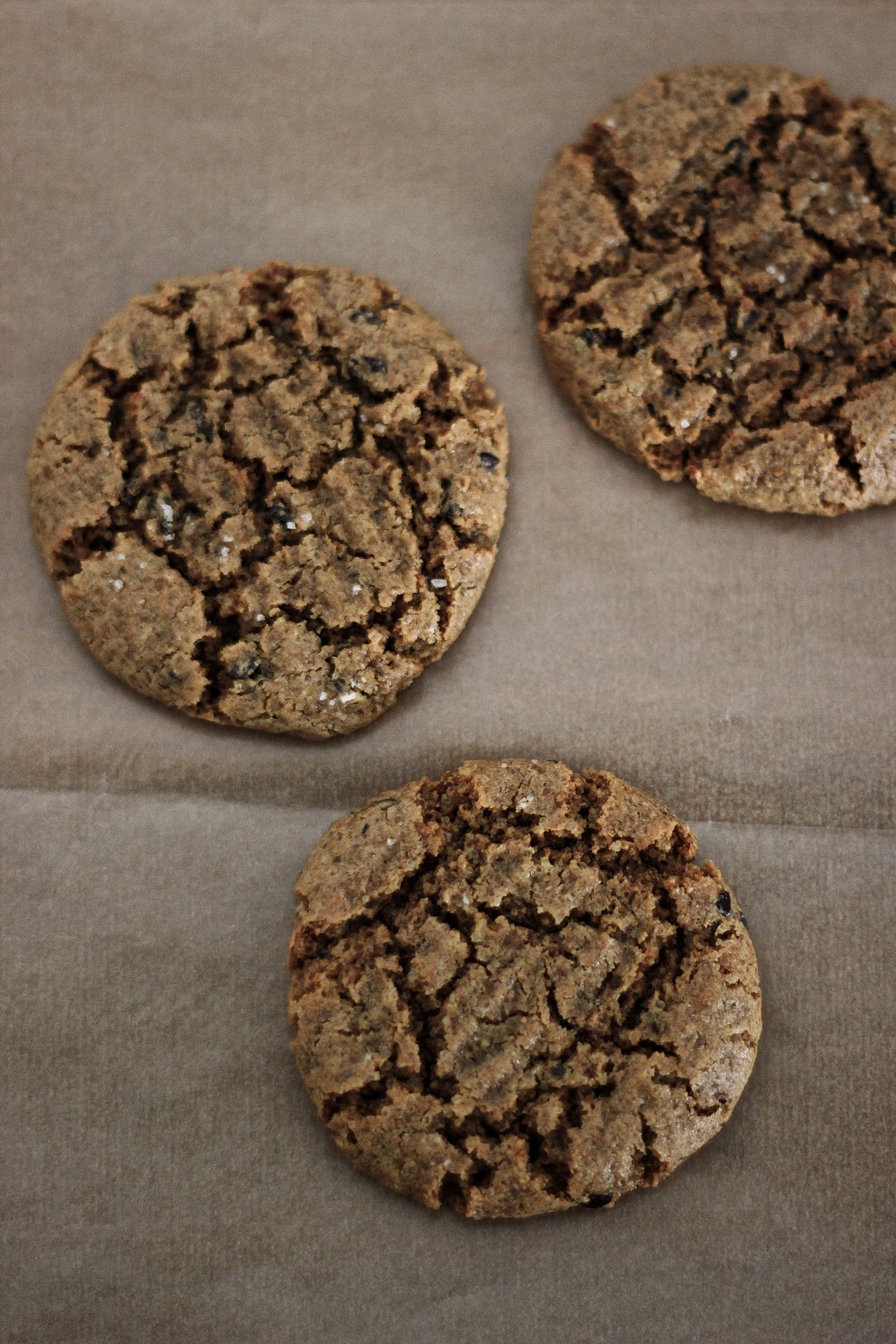 Enough about me. Let’s talk about cookies. More specifically these Flourless Walnut Butter Cookies. I don’t really do cookbook reviews in this little space. And this isn’t one either. But it would not feel right to talk about these Flourless Walnut Butter Cookies without talking about the book that inspired them. The foundation of these cookies is the Vanilla Espresso Walnut Butter from Tara O’Brady’s debut cookbook. Tara’s book is truly stunning. The pictures are glorious. And then there is Tara’s beautiful writing – she is witty yet authoritative and a few pages into her book you will trust her to try recipes that you don’t think should work. A fresh curry sauce involving a granny smith apple and heaps of fresh coriander? I hesitated. And yet, I loved it so much I think juice bars should be adding an apple coriander juice with a bit of heat from fresh chilies to their menu. Tara’s book has found a place in my home because the recipes mimic so clearly how I like to cook and eat. Her recipes also make the most of my pantry which refuses to be shoehorned into a particular culinary tradition and where mirin and pomegranate molasses wrangle for counter space next to the bottles of olive oil, rose water, argan oil and oyster sauce. Tara’s walnut butter is incredibly delicious thanks to the addition of ground espresso and vanilla. I am generally more of a plain nut butter person but will have to make an exception for Tara’s walnut butter in the future as it is just that good. And all that deliciousness translates into these cookies – thanks to the bitter espresso I like to think of them as the grown-up version of flourless peanut butter cookies. And while the cacao nibs I added are purely optional, I like a bit of crunch for texture when eating softer cookies like these.