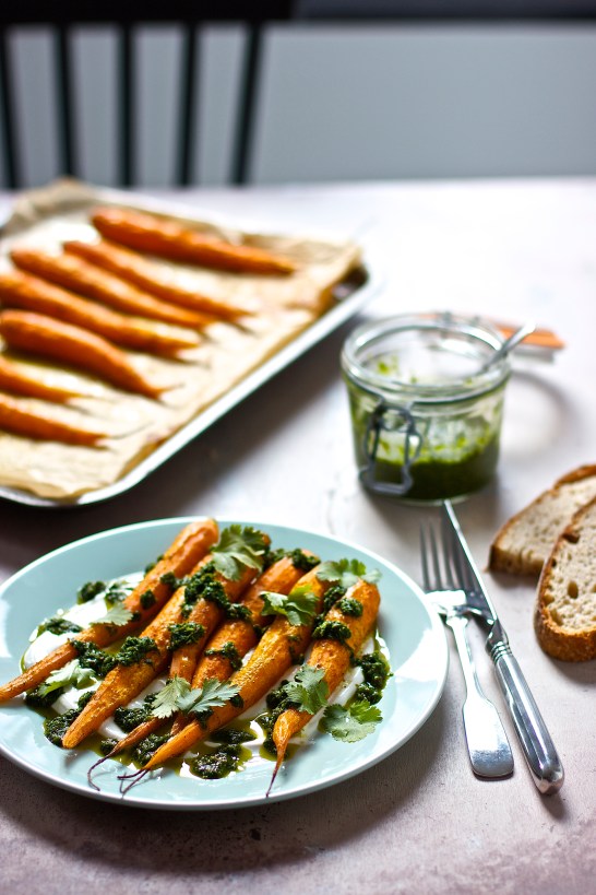 Notes: The recipe below makes enough to last me 3-4 meals if I am on my own. Feel free to double or triple the quantities if you are making this for a crowd. I also give the recipe for the Ras El Hanout carrots pictured in this post below. Also, zhoug is supposed to be quite fiery – so feel free to go as spicy as you want or, equally, leave out the heat, the sauce will still be super delicious.