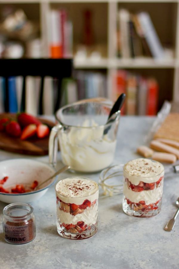 Tiramisu-ish with Strawberries, Sumac and Labneh
